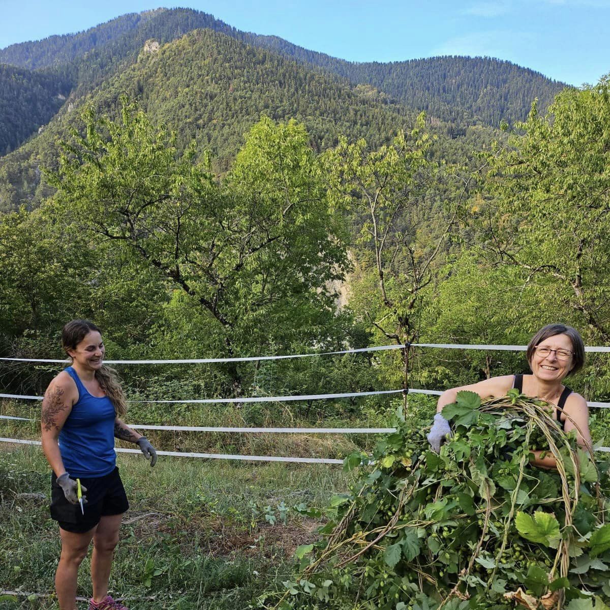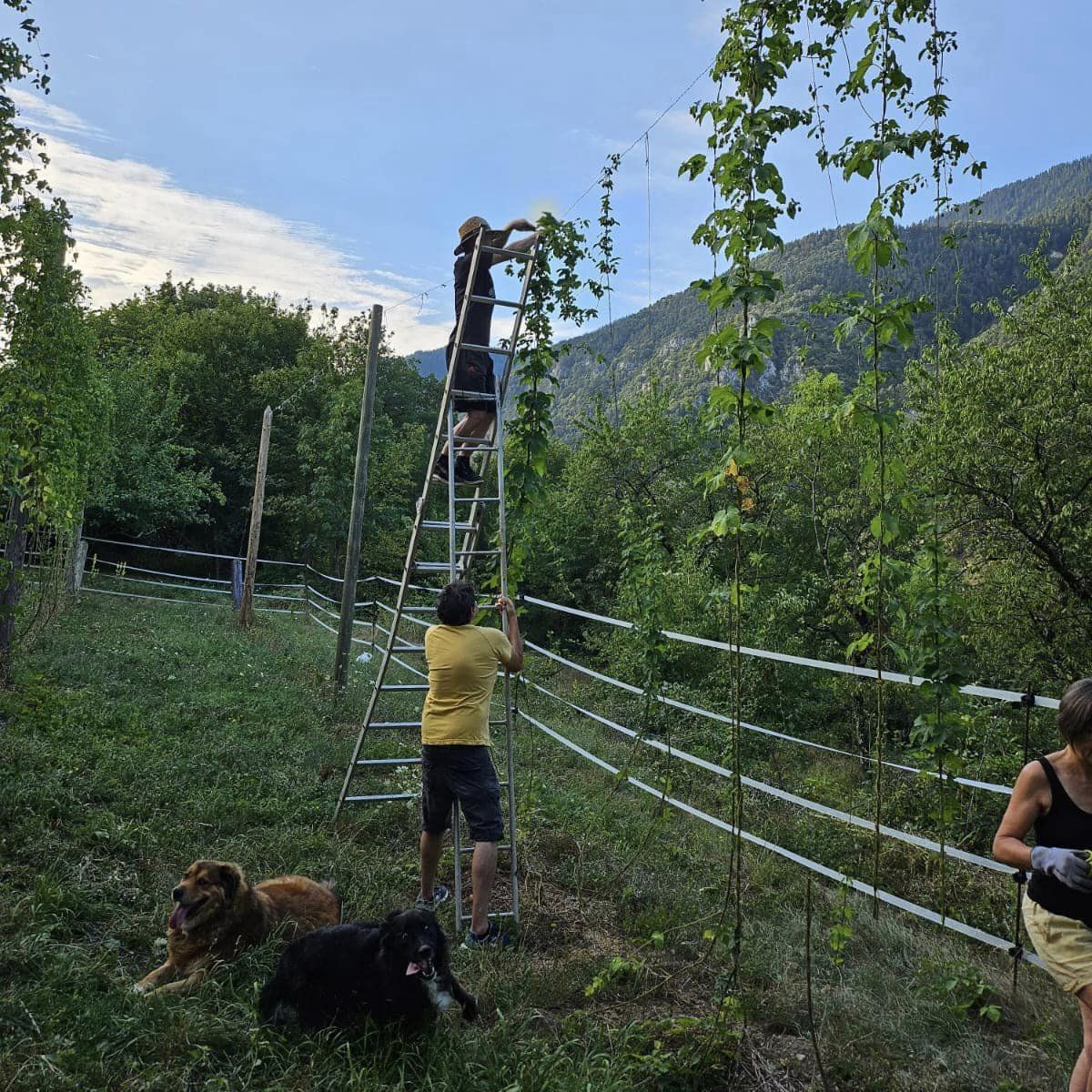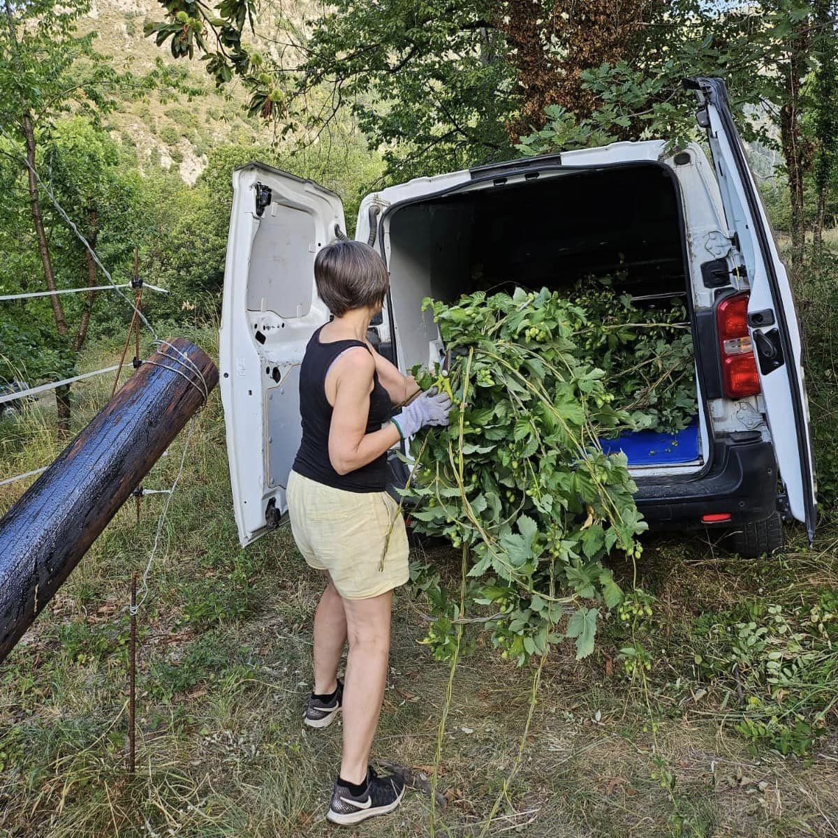 bio à St Martin Vesubie ! Ce samedi, on a commencé par émonder les 100 pieds de houblons Styrian Golding, la seconde partie de la récolte étant prévue d’ici 15 jours pour ramasser le houblon Cascade.
