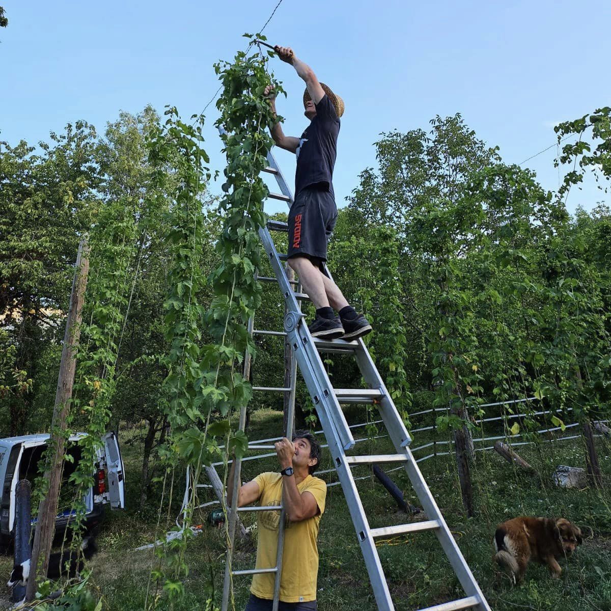 Récolte de houblon saison 2: récolte précoce dans notre houblonnière